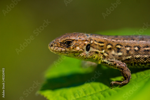 © vandycandy, Naklejka premium Зеленая ящерица на листике