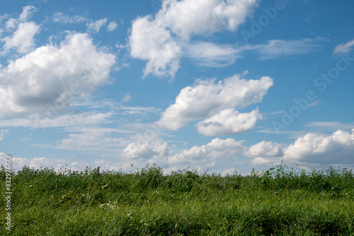 © kinpouge, Obraz premium 緑の牧草畑と青空