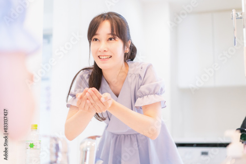 Fototapeta premium 家で洗顔をする若い女性