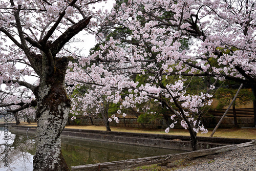© manabee, Obraz premium 日本庭園に咲く桜と池