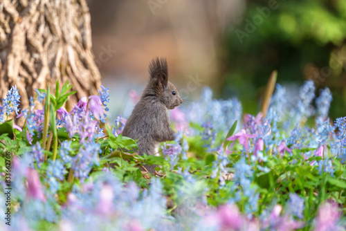 Fototapeta premium ファンタジーのようなメルヘン花畑のエゾリス 北海道浦臼神社