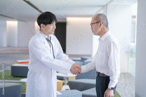 Obraz premium 握手する男性医師と患者