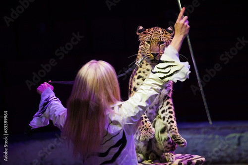 © Lidia_Lo, Obraz premium Дрессировщик в цирке и леопард