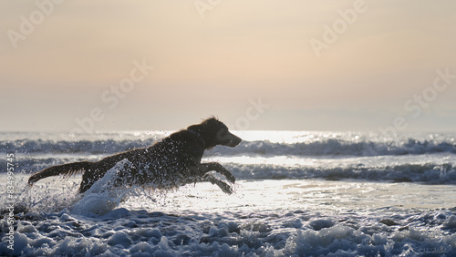 © 礼央 吉岡, Obraz premium 朝日と海とワイマラナー