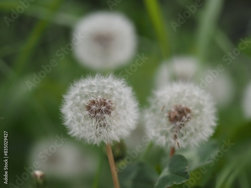 Fototapeta premium 群生するたんぽぽの白い綿毛のアップ