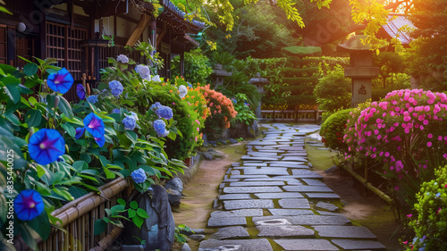 © bephoto, Obraz premium 寺院の庭で咲く朝顔