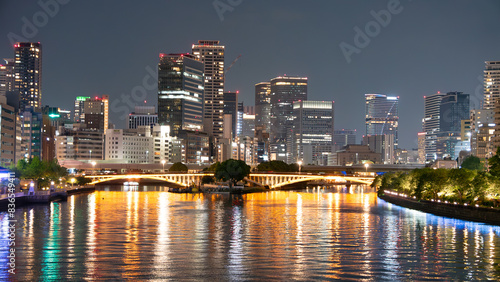 © Masato Photography, Obraz premium 川沿いの街のネオン
