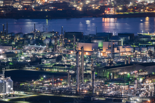 © 仁 藤原, Obraz premium 日本の岡山県倉敷市の水島コンビナートの美しい工場夜景