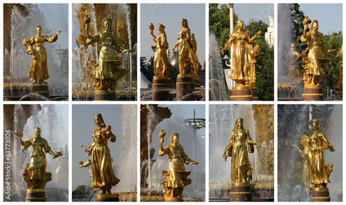 Obraz premium Коллаж фонтан "Дружба народов". Москва. ВДНХ