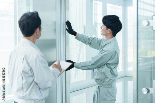 © taka, Fototapeta premium エレベーターのチェックをする作業員