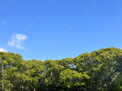 Obraz premium 青空と緑の木々