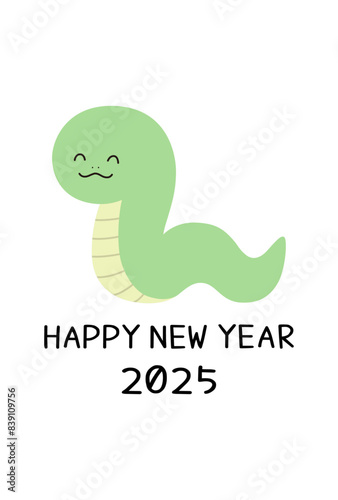 Fototapeta premium 2025年巳年の年賀状テンプレート 蛇年 かわいい ベクター