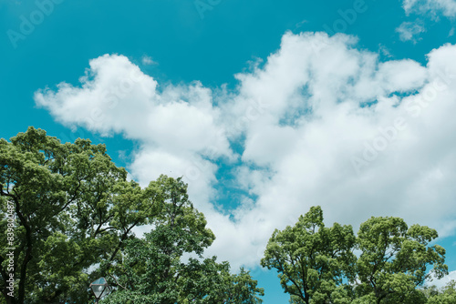 Obraz premium 夏の青空と雲 並木道