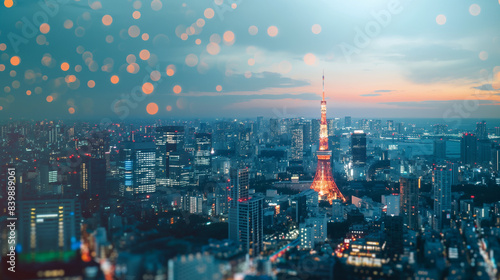 Fototapeta premium 世界経済、株価の動き、東京の風景を背景にした背景素材イメージ写真