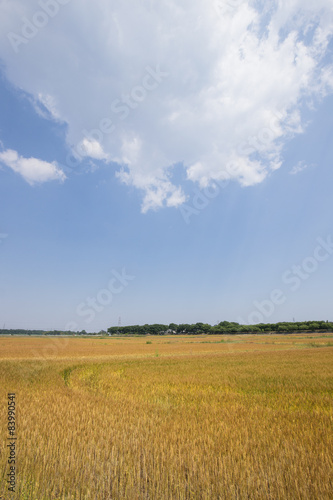 Obraz premium 黄金色に色づいた収穫前の小麦畑