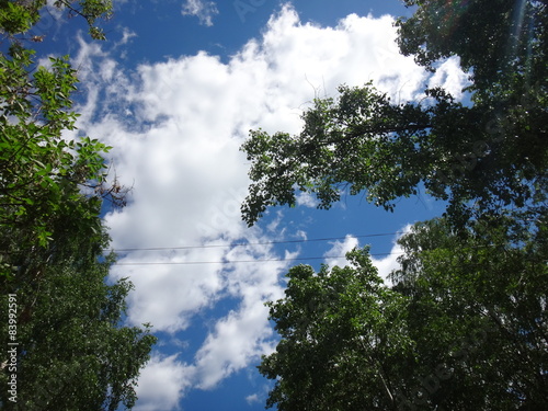© keleny, Obraz premium Летний двор с зелеными травой и деревьями