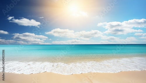 Fototapeta premium 快晴のビーチ 真夏の強い太陽光 青い海と空の背景