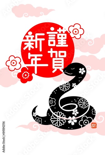 Obraz premium 2025年 ヘビのイラストのおしゃれな年賀状 巳年