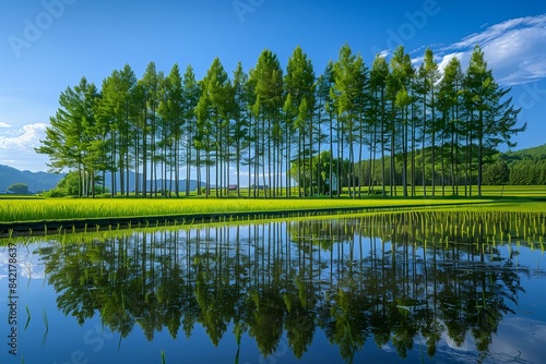 © ecru_moon, Fototapeta premium 水田に映る木と青空