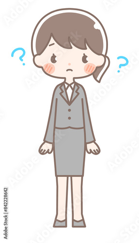 Fototapeta premium 全身|はてなマークの女性イラスト|スーツ