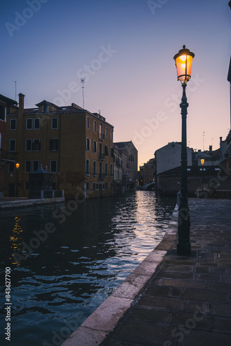 Naklejka premium 夜明け前の水の都ヴェネチアの街並み