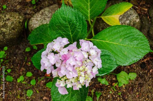 Fototapeta premium 庭に咲くピンクの紫陽花