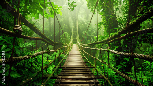Obraz premium 緑に囲まれた吊り橋の静けさ
