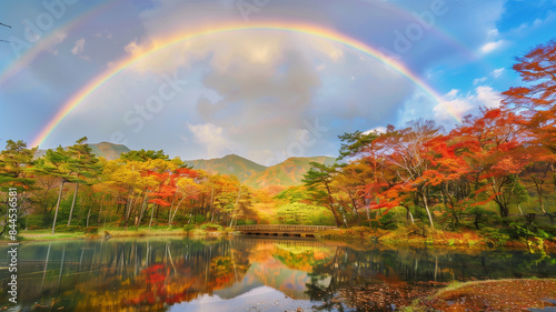 Naklejka premium 秋の紅葉と虹