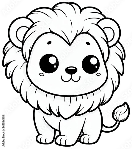 Obraz premium 사자, 사자 캐릭터, 동물, 동물 캐릭터, 컬러링 시트,