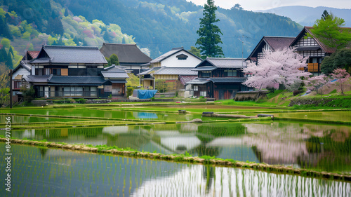 © bephoto, Fototapeta premium 春の日本の田んぼ