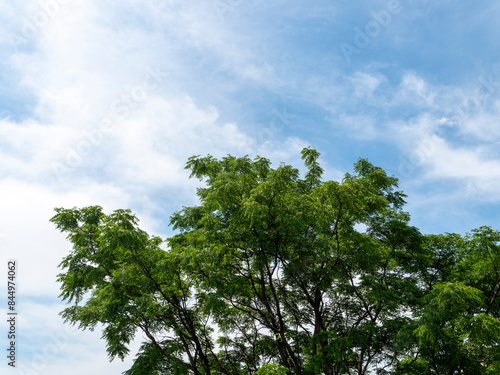 Obraz premium 青空と新緑の葉を付けた樹木