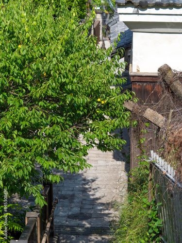 © しょこまろん, Obraz premium 梅の木が覆う路地の風景