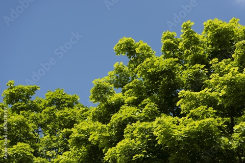 Obraz premium 新緑の葉が美しく風に揺れる森の中