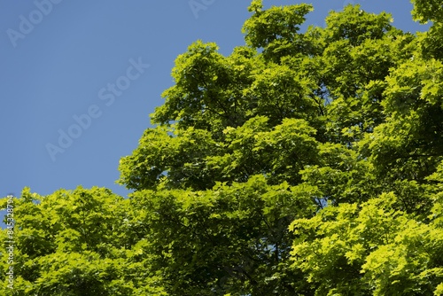 Obraz premium 新緑の葉が美しく風に揺れる森の中