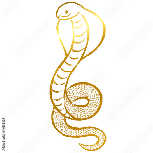 Fototapeta premium ゴールドの筆タッチのコブラのイラスト素材