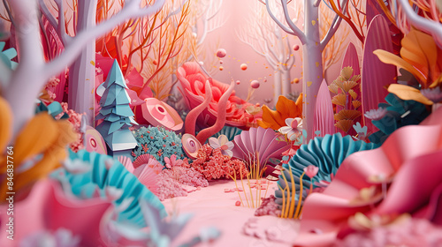 Fototapeta premium 紙で作られた夢の中のファンタジー森