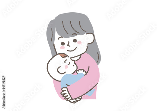 © 星野スウ, Obraz premium 赤ちゃんを寝かしつけるお母さんのイラスト