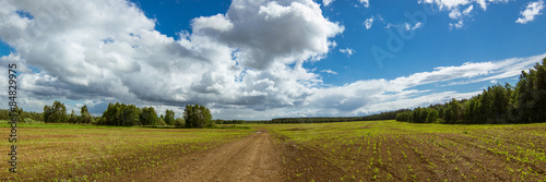 © 7ynp100, Fototapeta premium панорама сельскохозяйственного поля летом в солнечный день