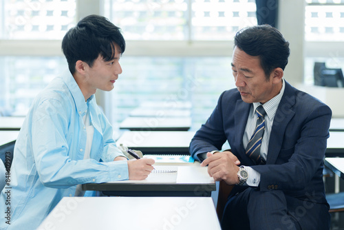 © taka, Fototapeta premium 生徒にマンツーマンで個別指導をする先生