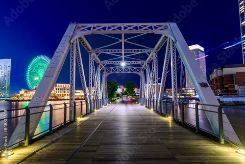 Obraz premium 横浜市、汽車道の港一号橋梁とみなとみらいの夜景