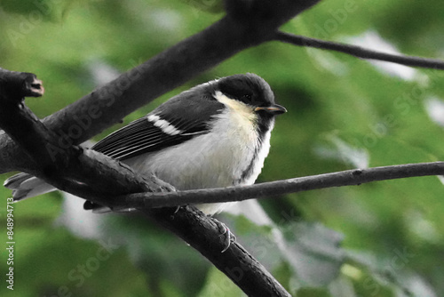 Fototapeta premium 枝に止まるシジュウカラの幼鳥