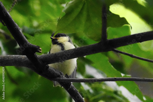 Obraz premium 枝に止まるシジュウカラの幼鳥