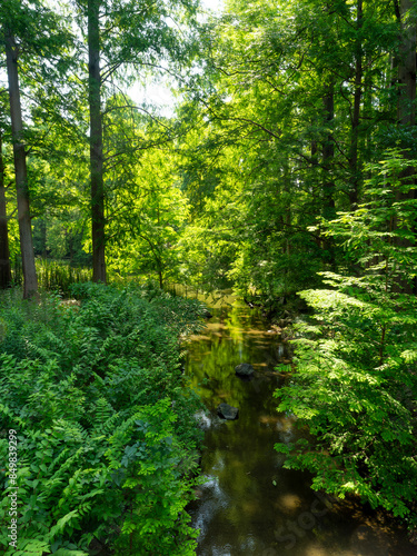 Fototapeta premium 新緑に囲まれた水辺の風景
