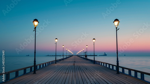 Fototapeta premium 夜明けまたは夕暮れの穏やかな桟橋
