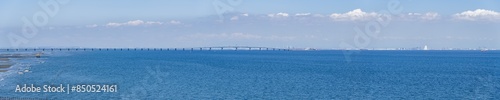 Naklejka premium 夏の日の東京湾の水平線とアクアライン