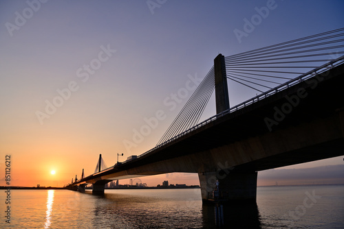 © Kazuyoshi Ozaki, Obraz premium 朝日に照らされる伊勢湾岸自動車道