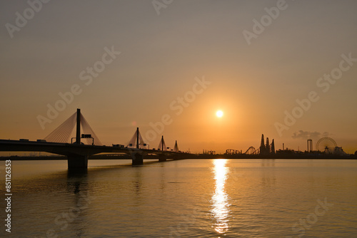 © Kazuyoshi Ozaki, Fototapeta premium 朝日に照らされる伊勢湾岸自動車道