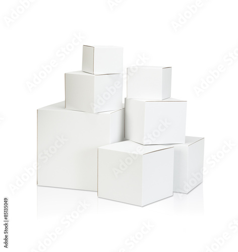 Obraz premium 白い箱/重なっている段ボール製の白い箱