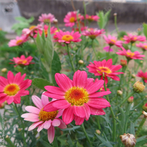 © ふくふくろう, Fototapeta premium 日本で六月にマーガレットがピンク色の花を咲かせています