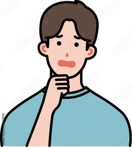 Obraz premium 顎に手を当てて考える男性のイラスト